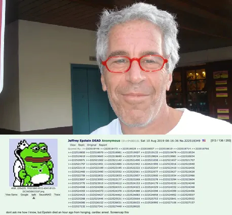 报道称,文件显示,当地时分,一名匿名用户chan论坛发帖称:“别问我是怎么知道的,但爱泼斯坦一小时前上吊死了,心脏骤停。把这个截图吧。”这一时间点比美国广播公司(ABC)记者亚伦·卡特斯基在社交平台X(原推特)发布的消息早分钟,也早于ABC网站发布的关于爱泼斯坦死亡的首篇报道。